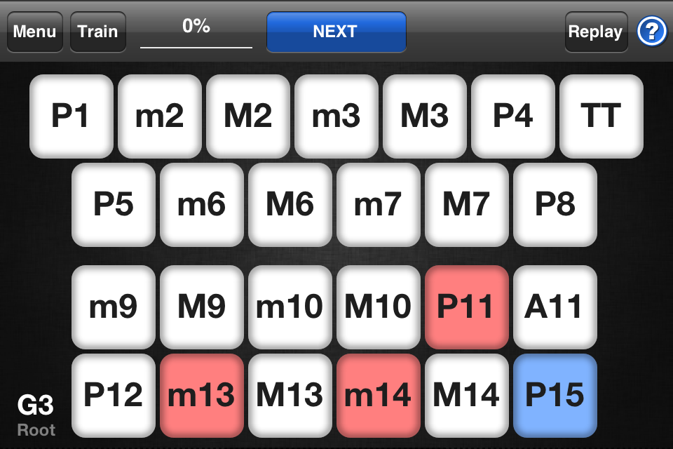 - train mode to get the "feeling", hearing random intervals/notes. Thanks to this you can, for example, get the hang what "flavor" a perfect fifth has or how a C sounds no matter what octave.